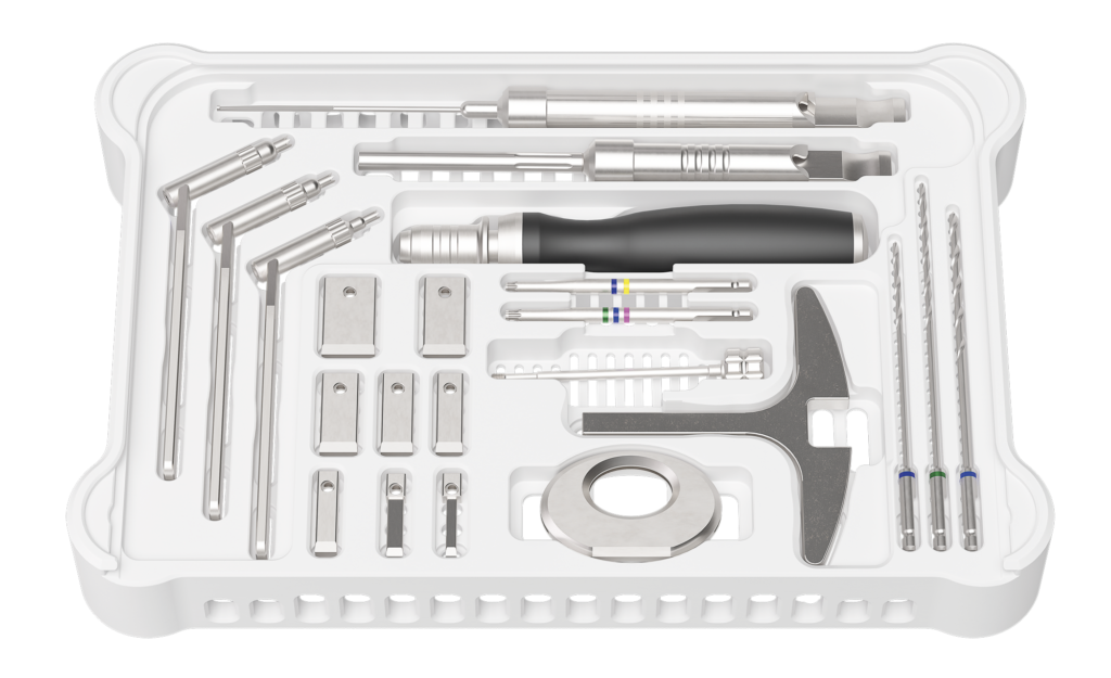 Each set is equipped with special TTA instruments and implants in different sizes to ensure an optimal selection for patients of different sizes.